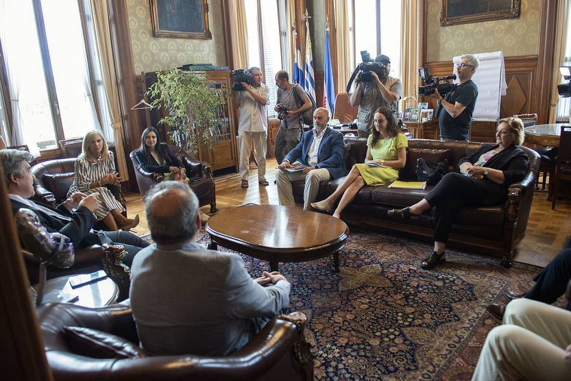 Reunión interpartidaria, este miércoles, en el despacho de Beatriz Argimón, en el Palacio Legislativo.
