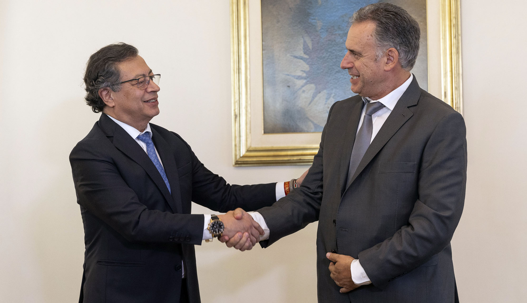 Gustavo Petro y Yamandú Orsi, el 4 de diciembre, en el hotel Radisson.