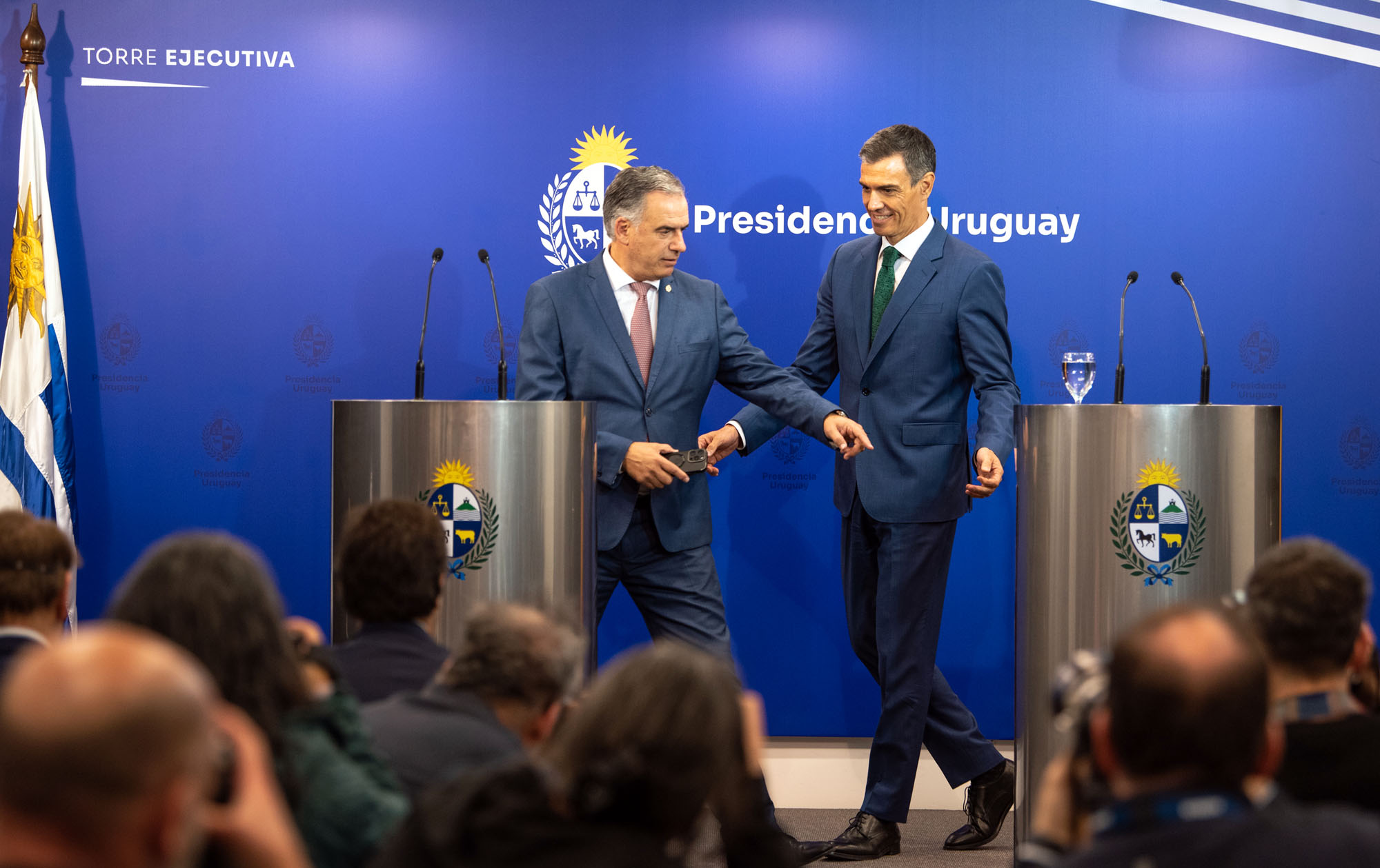 Pedro Sánchez y Yamandú Orsi, el 22 de julio, en la Torre Ejecutiva.