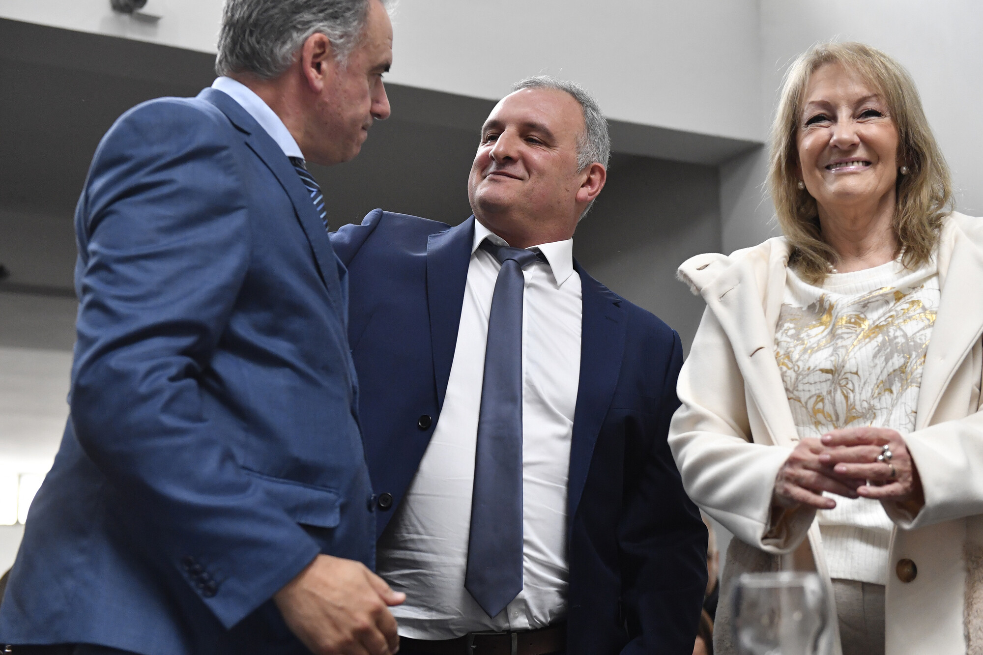 Yamandú Orsi y Carolina Cosse en la asunción de Daniel Ximénez como intendente de Lavalleja, el 11 de julio, en Minas.
