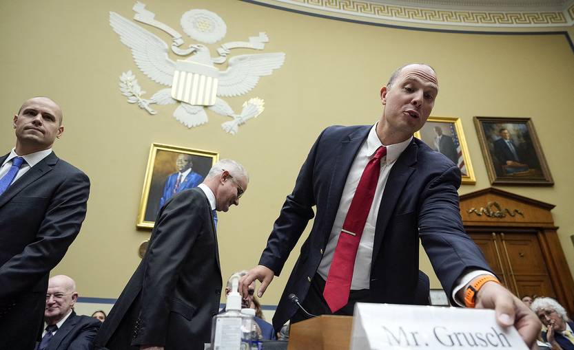 Los militares retirados Ryan Graves, David Fravor y David Grusch durante una audiencia el miércoles, en el Capitolio.