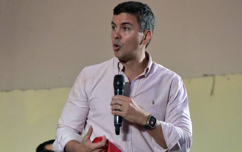 Santiago Peña, candidato presidencial por el Partido Colorado, durante un acto en Asunción el 17 de abril.