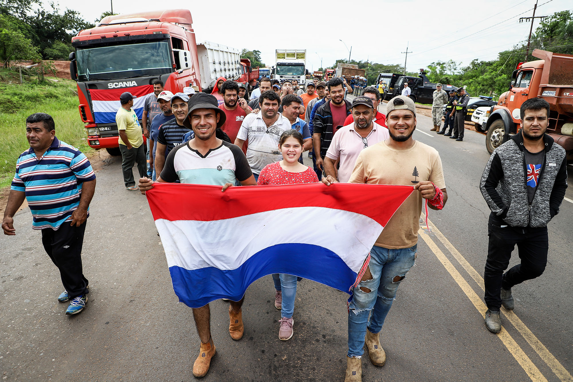 Camioneros se manifiestan contra el proyecto de ley que pretende penalizar el cierre de rutas como método de protestas, ayer, en la ciudad de Limpio.
