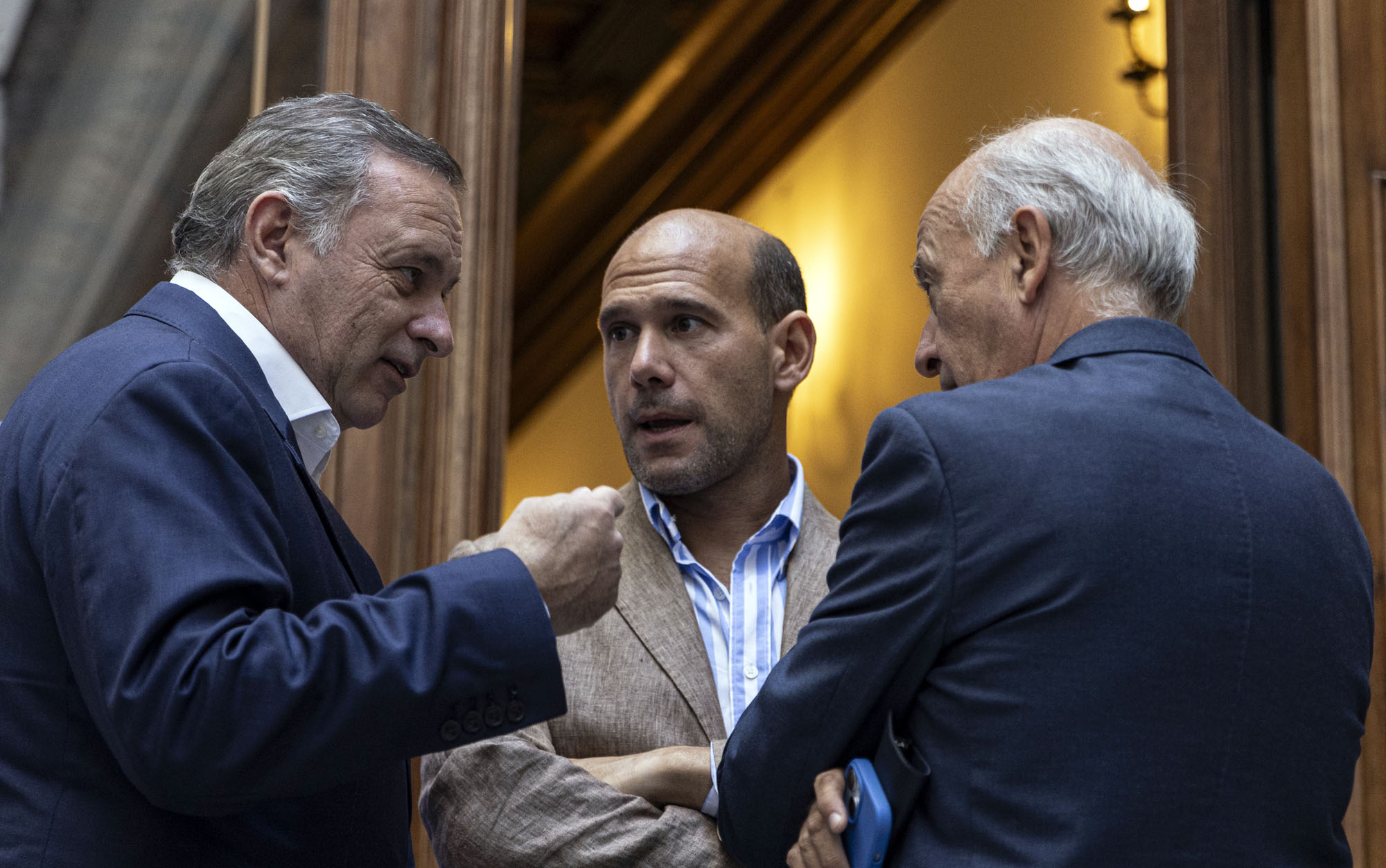 Álvaro Delgado, Martín Lema y Javier García, este lunes, en la Casa del Partido Nacional.