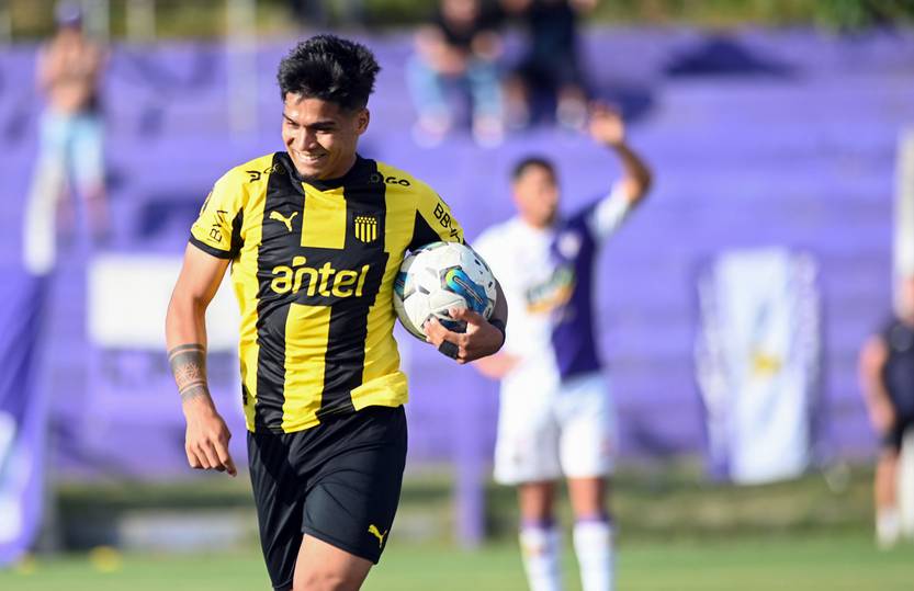 Matías Arezo, después del gol de Peñarol a Fénix, en el Parque Capurro (28.11.2023).