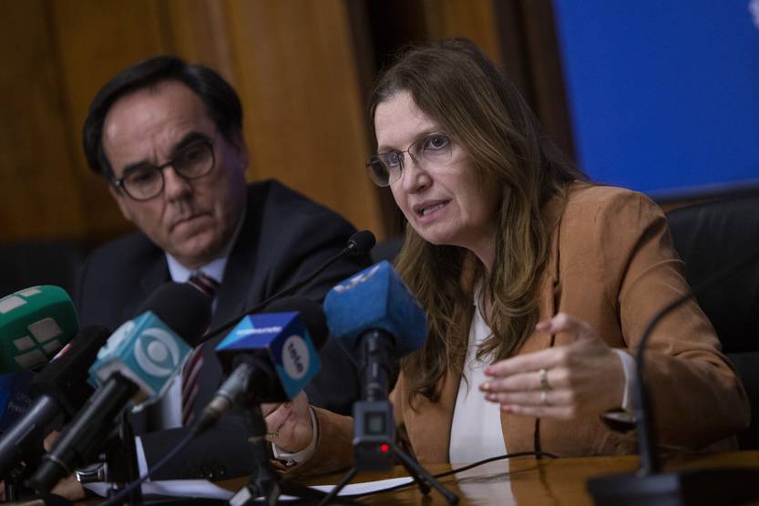 El ministro de Ambiente, Robert Bouvier, y la ministra de Salud Pública, Karina Rando, en conferencia de prensa por la salinidad del agua de OSE.