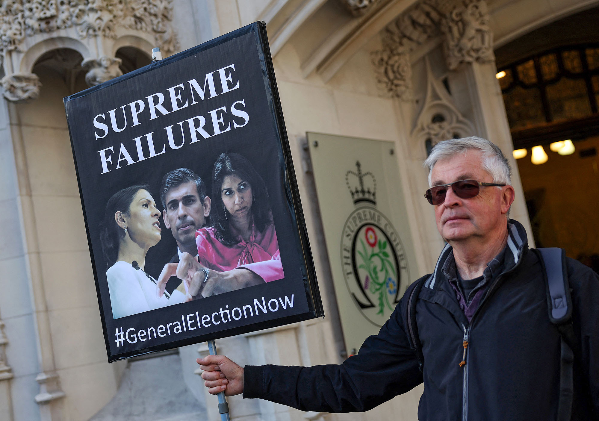 Protesta contra el gobierno y el plan para enviar inmigrantes a Ruanda, frente a la Corte Suprema de Gran Bretaña (15.11.2023).