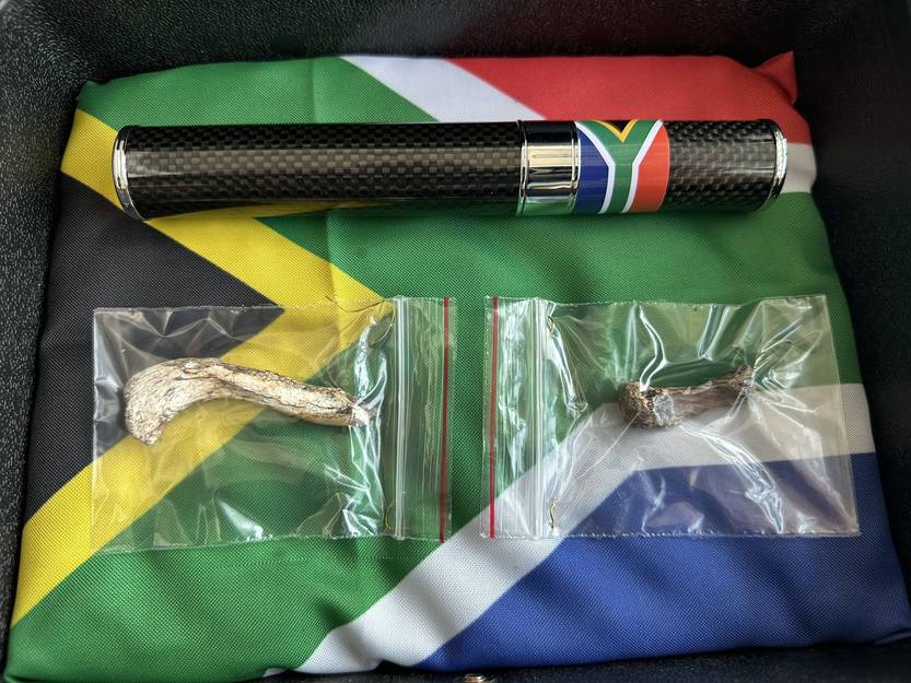 Restos de humanos antiguos que fueron al espacio en vuelo de Virgin Galactic. Foto: Lee Berger en red X