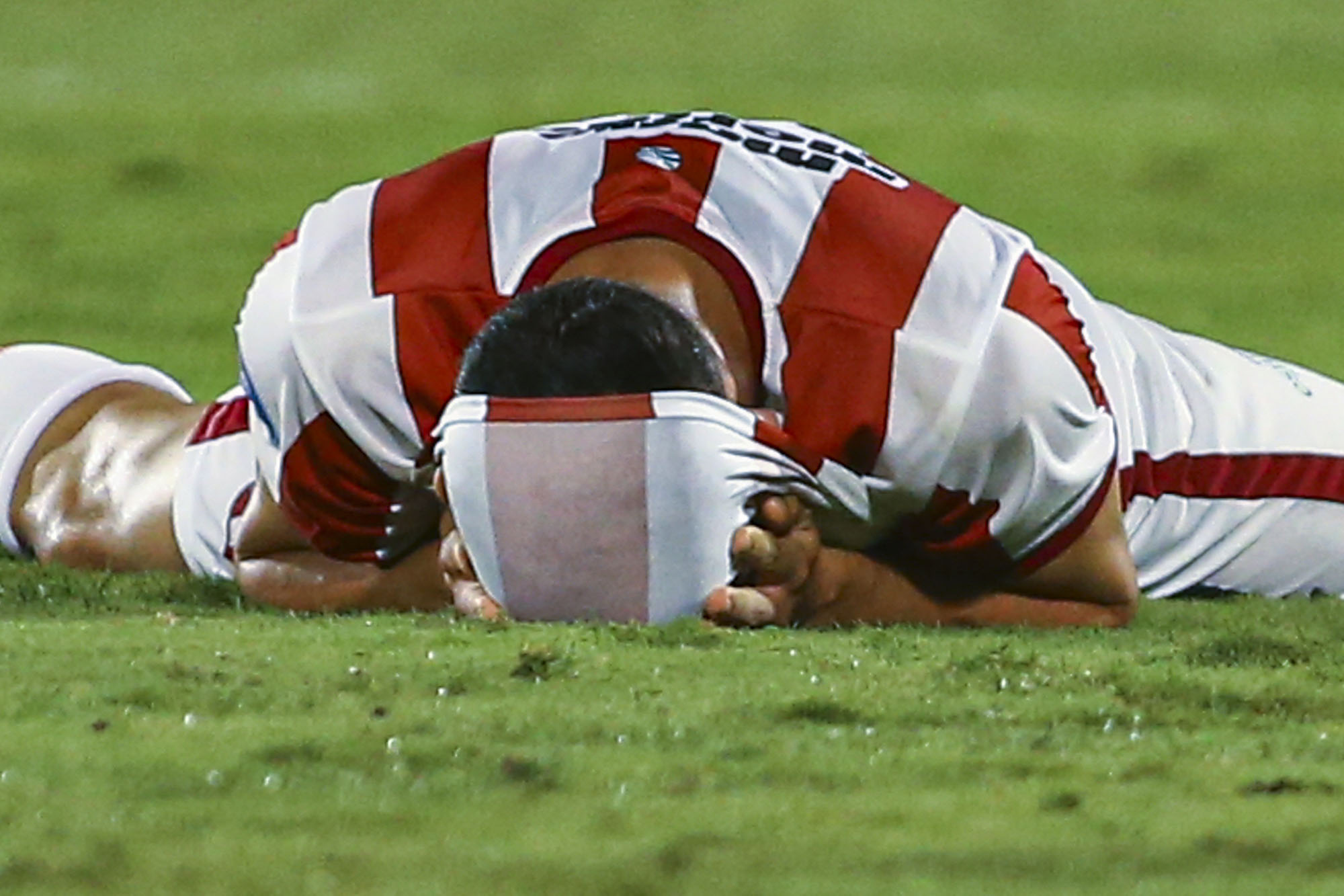 Thiago Borbas, de River Plate, este jueves, en el estadio Centenario.