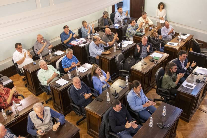 Aplausos en la sesión de la Junta Departamental de Colonia, el 5 de noviembre, luego de la aprobación de la compra de un predio en Sudamtex para la instalación de la Udelar en Colonia.
