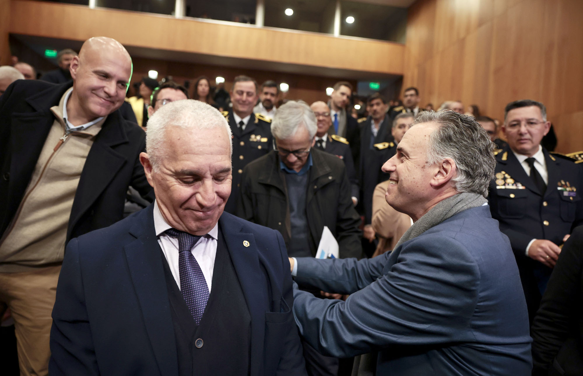 Francisco Legnani, Carlos Negro y Yamandú Orsi, en la presentación de Encuentros por Seguridad, el 28 de julio, en el anexo de Torre Ejecutiva.