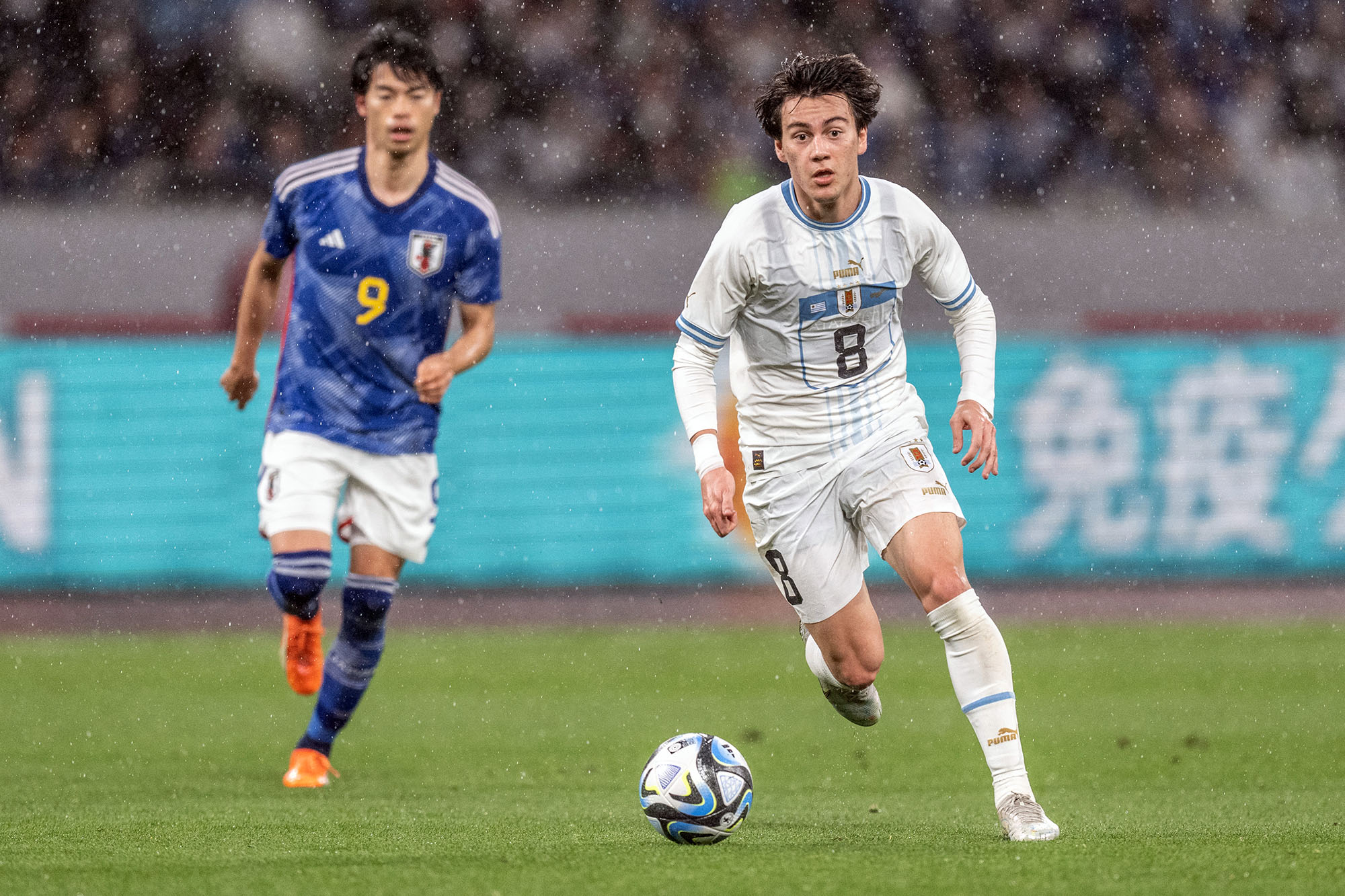Facundo Pellistri durante el partido amistoso ante Japón, el 24 de marzo, en el estadio Nacional de Tokio.