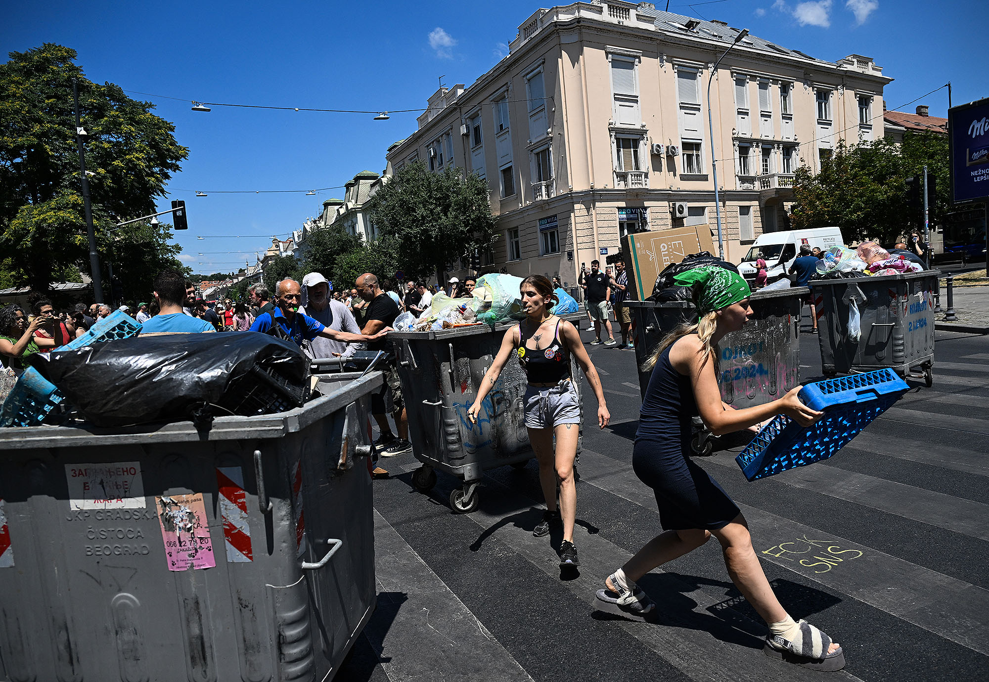 Manifestantes antigubernamentales bloquean una calle, el 30 de junio, en Belgrado.