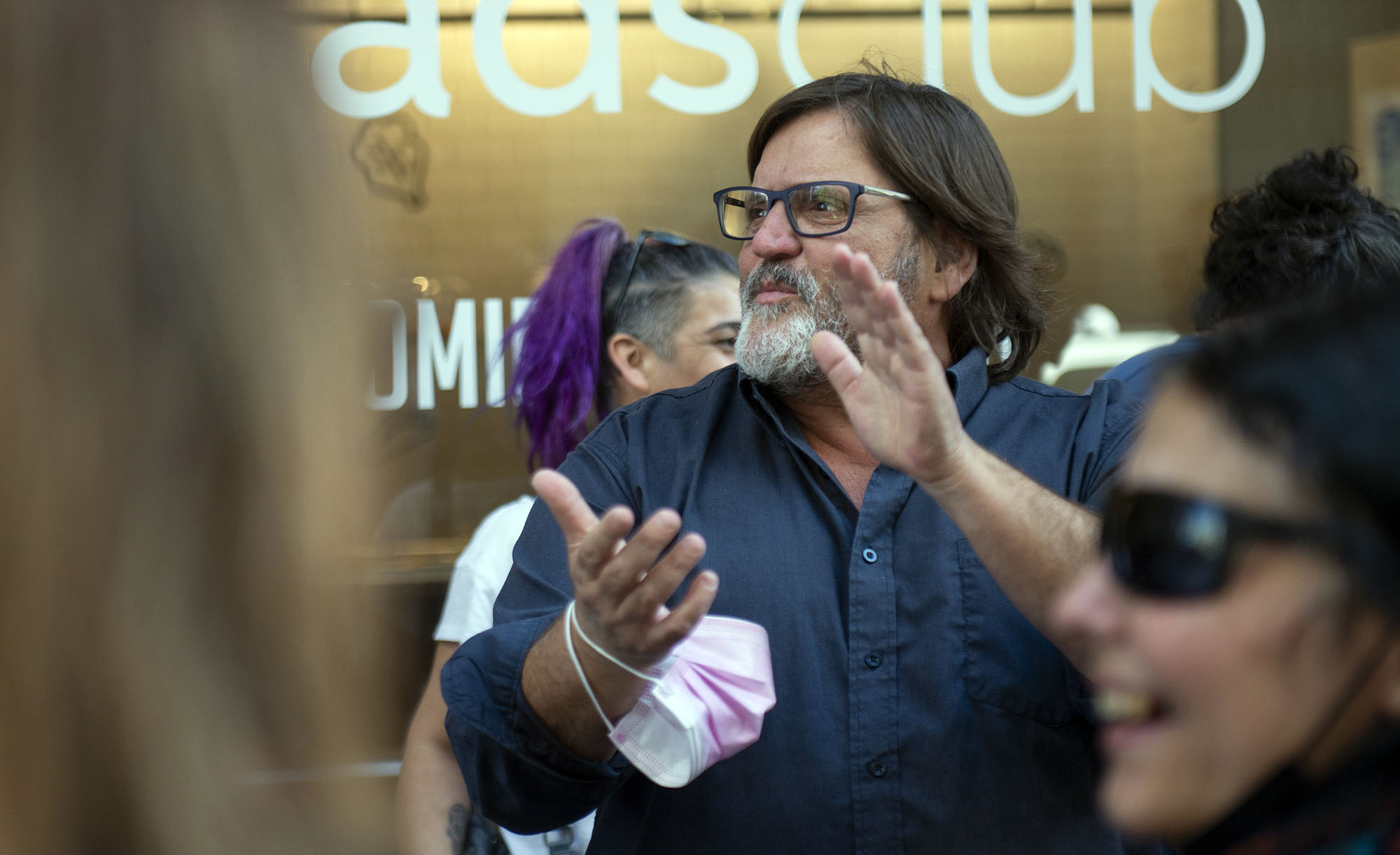 Marcel Slamovitz durante una concentración, ayer, en la sede de Secundaria en Ciudad Vieja.