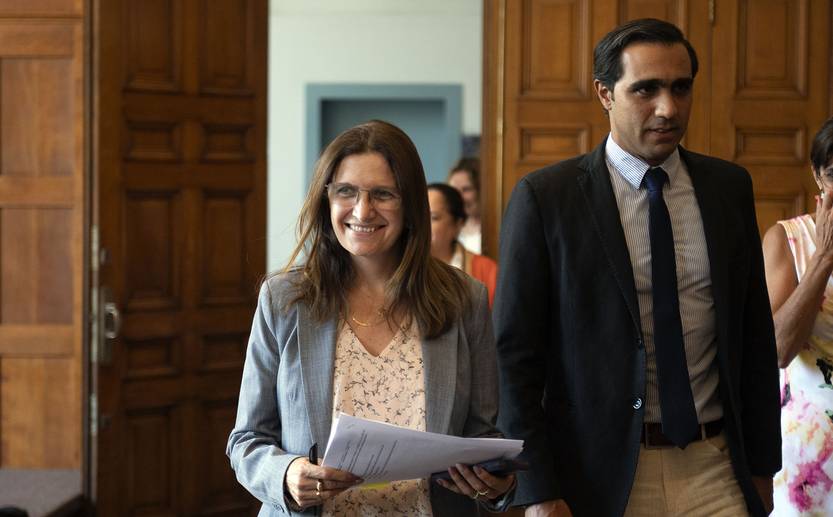 Karina Rando y José Luis Satdjian, este miércoles, en el Ministerio de Salud Pública.