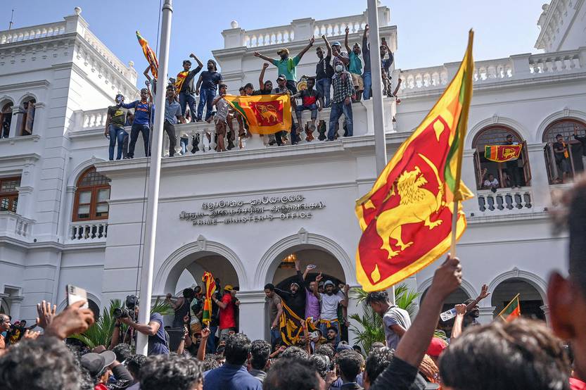 Protesta antigubernamental dentro del edificio de oficinas del primer ministro de Sri Lanka, este miércoles, en Colombo.
