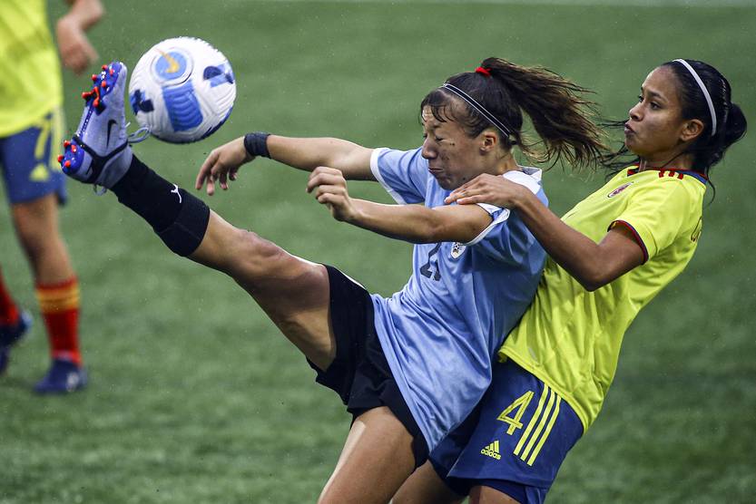 Luana Fernández, de Uruguay, y María Correa, de Colombia, este miércoles, en el estadio Charrúa.