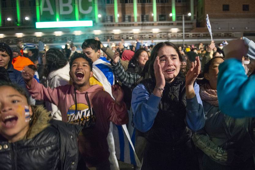 Público mira la final sub 20 este domingo, en la pantalla del IMPO.