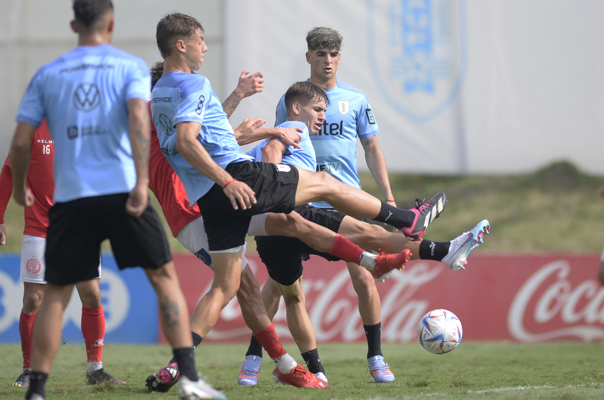 Enrenamiento de la selección sub 20 en el Complejo Uruguay Celeste (archivo, abril de 2023).