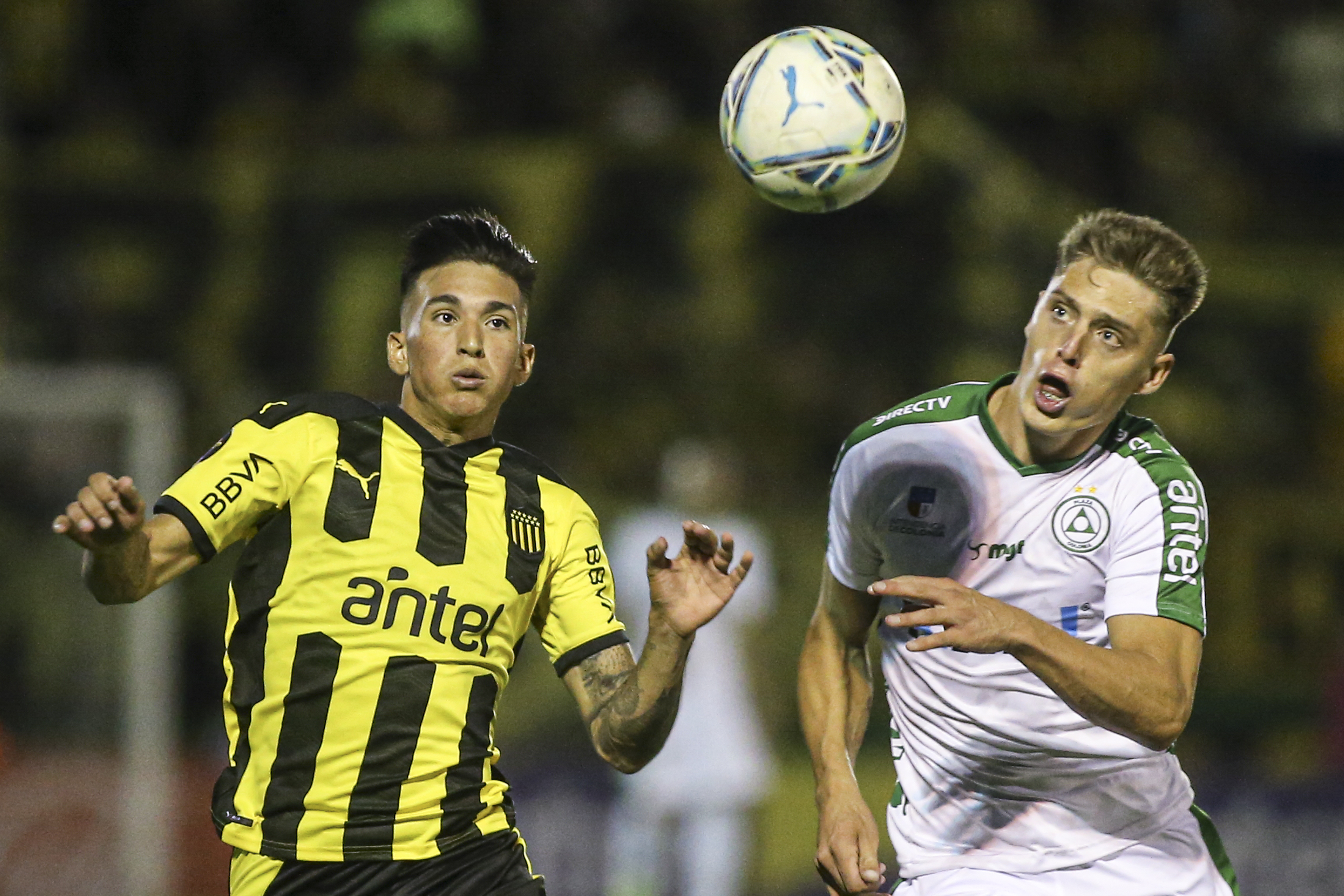 Ignacio Laquintana de Peñarol y Eddy Greising, de Plaza Colonia, este domingo, en el Campus de Maldonado.