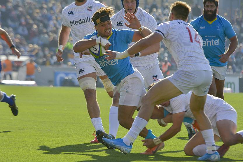 Nicolás Freitas, de Uruguay, y Christian Dier, de Estados Unidos, el sábado, en el estadio Charrúa