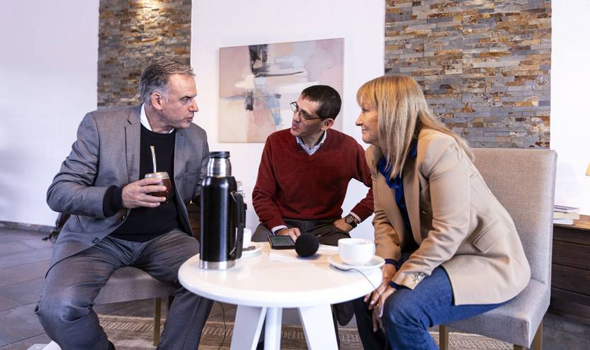 Yamandú Orsi, Fabricio Suárez y Carolina Cosse, este miésrcoles, en SUTEL.