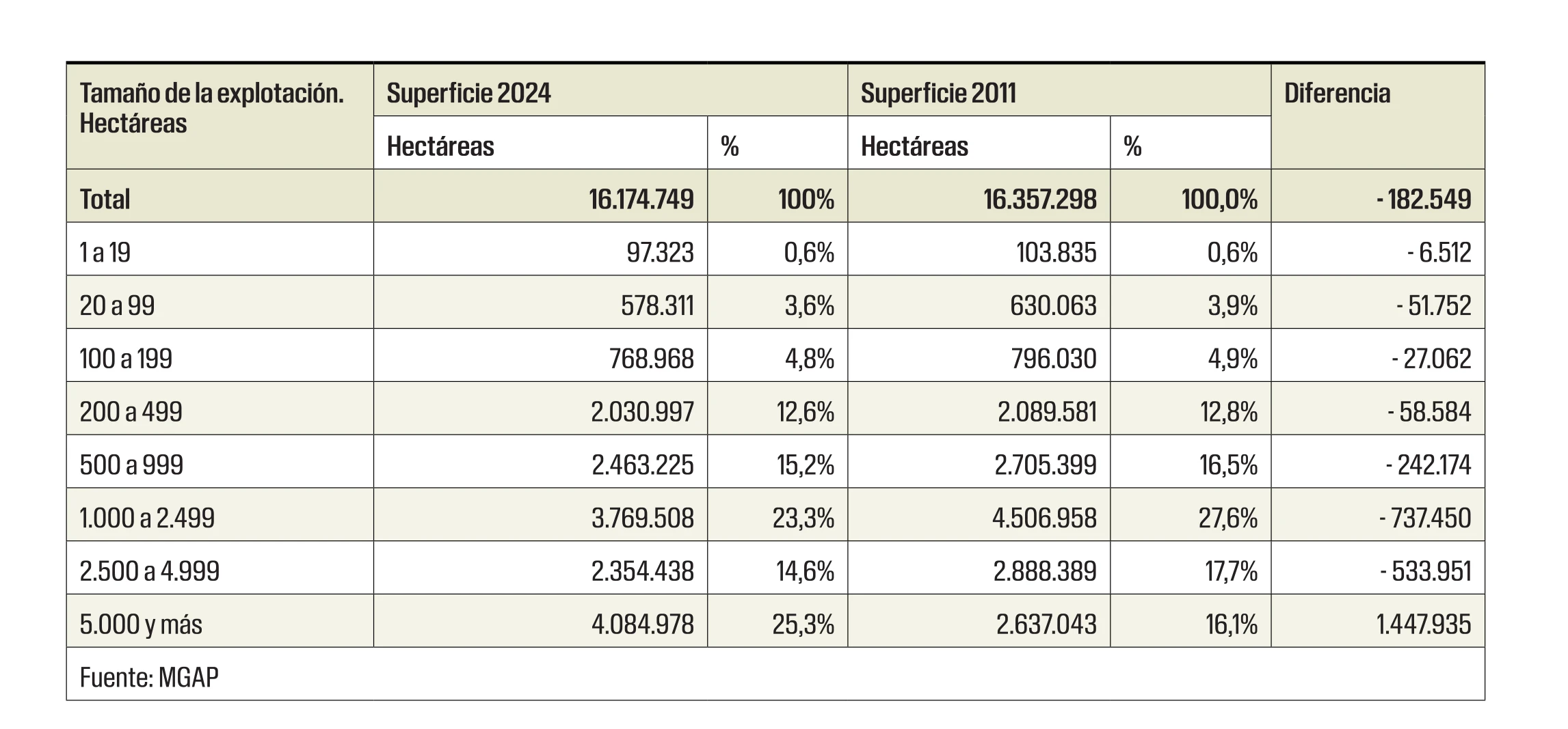 Tabla censo agropecuario