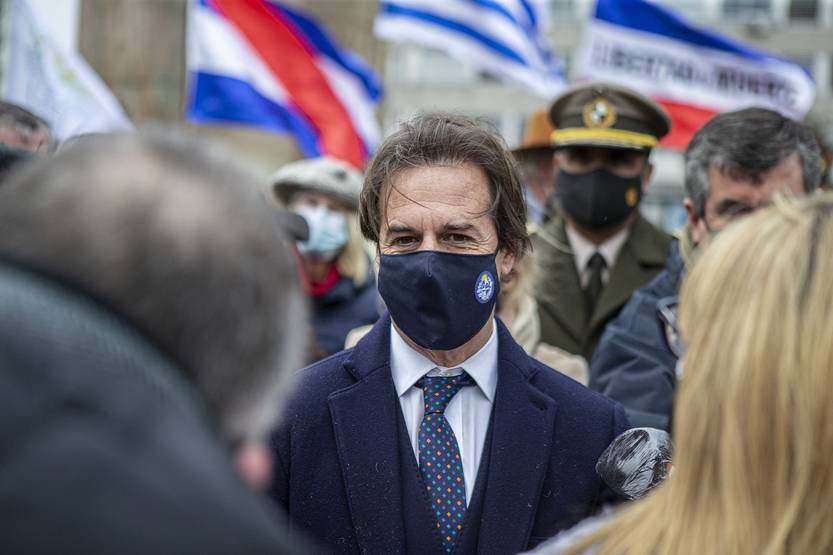 Luis Lacalle Pou, este domingo, en el Obelisco.