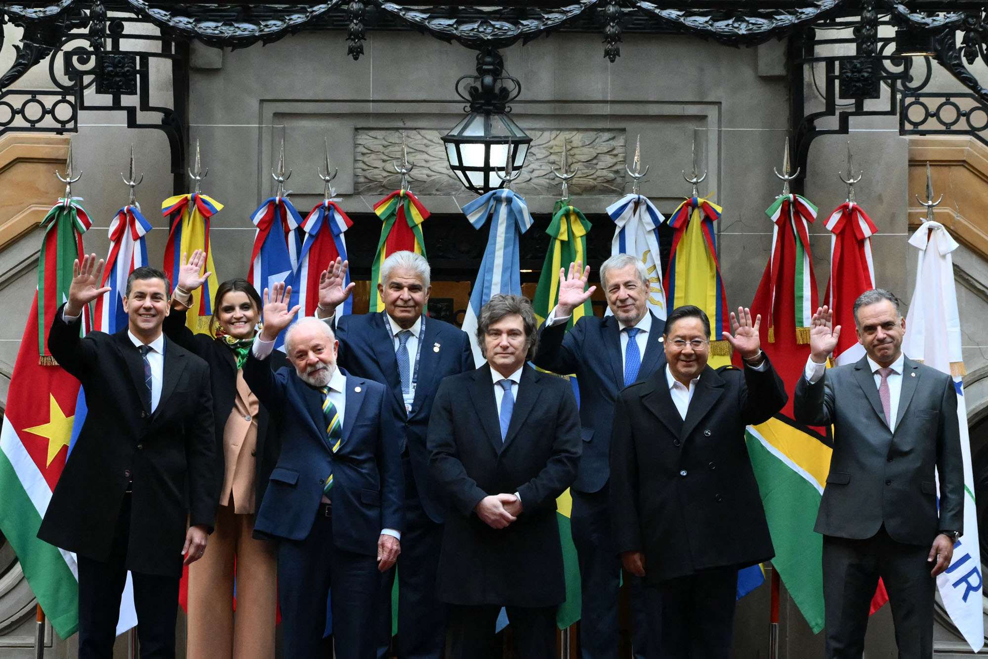 Foto de familia de la 66ª Cumbre de Líderes del Mercosur y Estados Asociados, el 3 de junio, en el Palacio San Martín, en Buenos Aires.