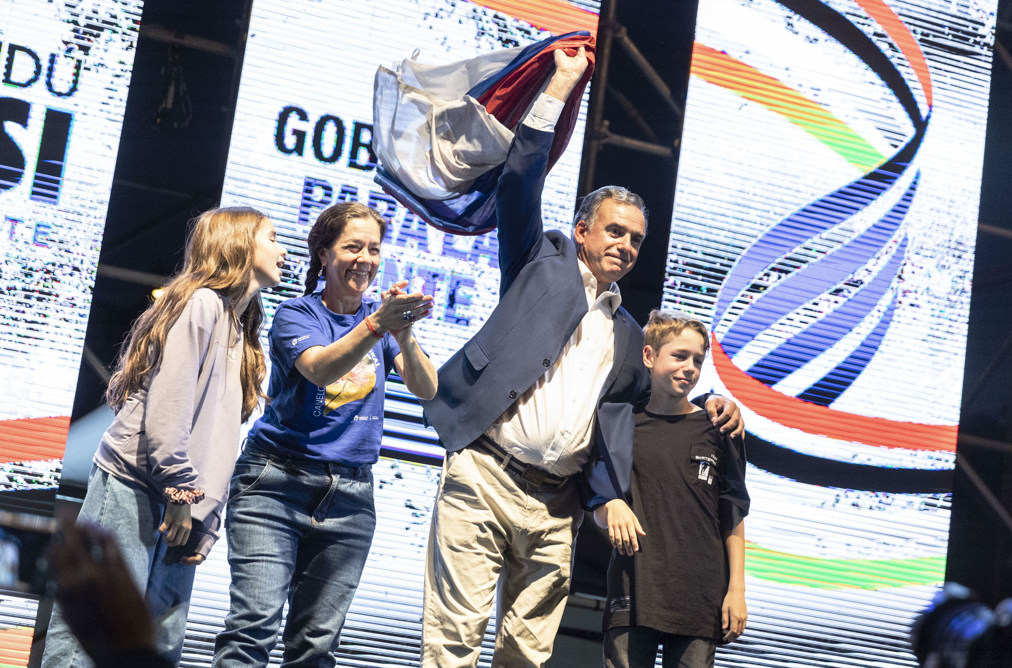 Yamandú Orsi, este domingo, en la Plaza Lafone, en La Teja.