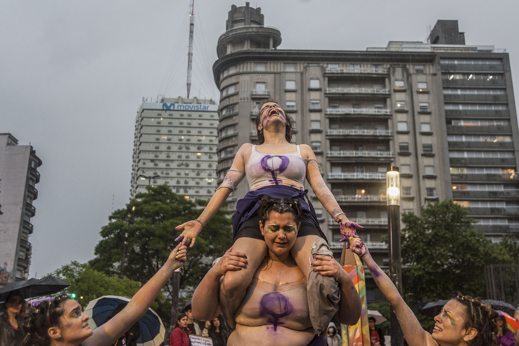 Movilización por el Día de la Eliminación de la Violencia contra la Mujer, convocada por la Coordinadora de Feminismos, este 25 de noviembre, en la explanada de la Intendencia de Montevideo.