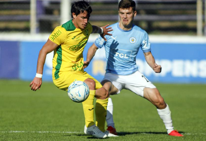 Andrew Teuten, de Torque, y Flavio Scarone, de Cerrito, este 7 de noviembre, en el estadio Luis Franzini.