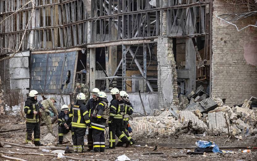 La Academia Nacional de Ciencias de Ucrania, después de un ataque con drones, ayer, en el noroeste de Kiev.