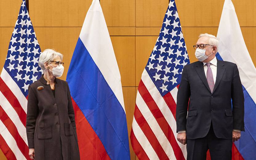 Wendy Sherman, subsecretaria de Estado de Estados Unidos, y Sergei Ryabkov, viceministro de Relaciones Exteriores de Rusia, asisten a conversaciones de seguridad sobre las crecientes tensiones en Ucrania, este lunes, en Ginebra.