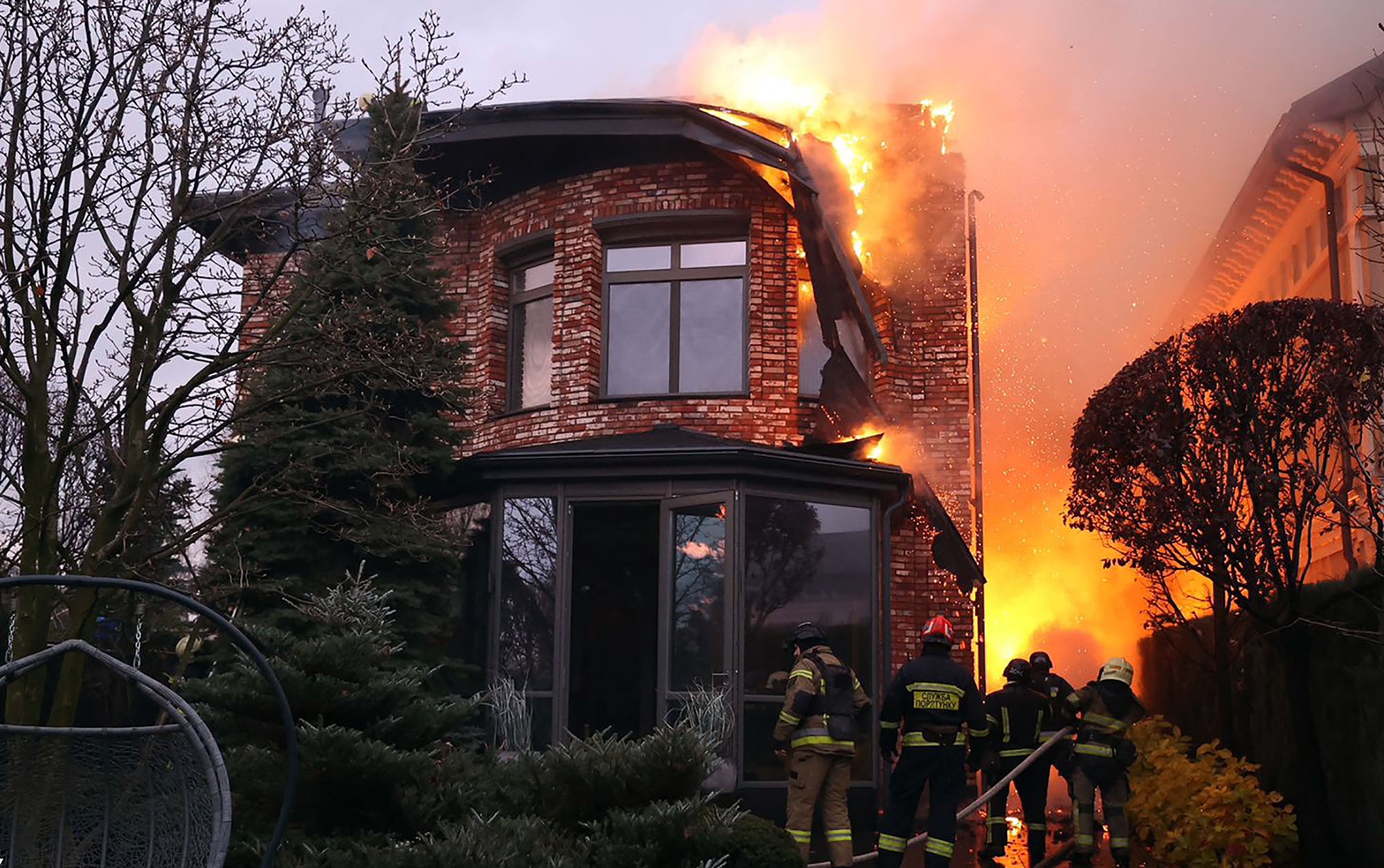 Bomberos ucranianos trabajan después de un ataque aéreo en Dnipro, Ucrania.