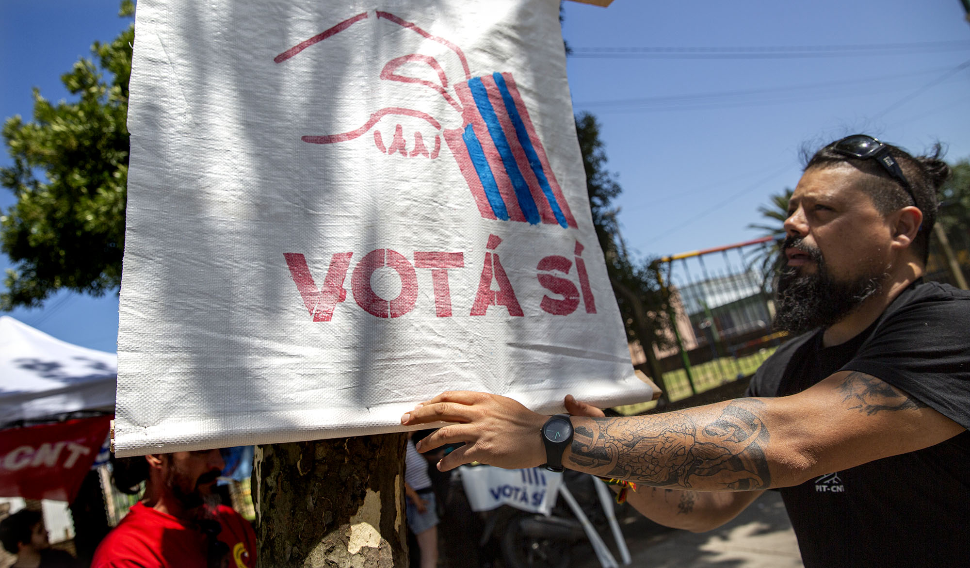 Campaña por el SI al referéndum de la LUC, en Piedras Blancas (archivo, diciembre de 2021).