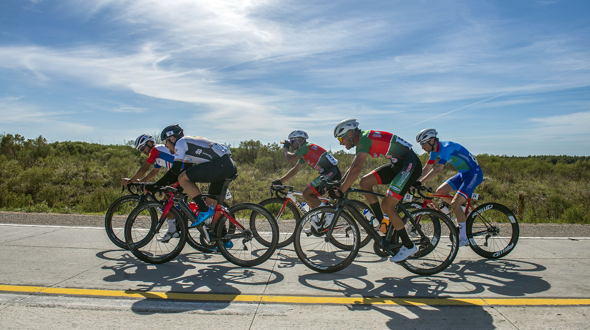 Pelotón de escapados en la tercera etapa de la Vuelta Ciclista del Uruguay entre Durazno y Trinidad (02.04.2023).